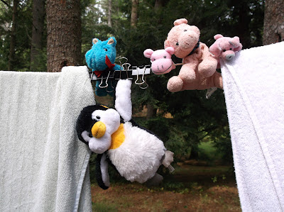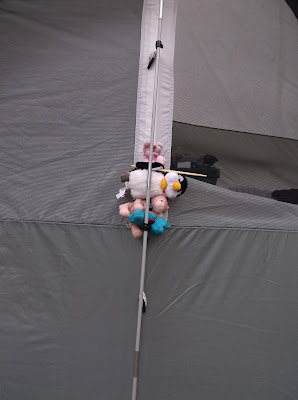 When they got there, they had to figure out how to set up the tent. Turns out it isn't so easy when there's a penguin holding a hammer...