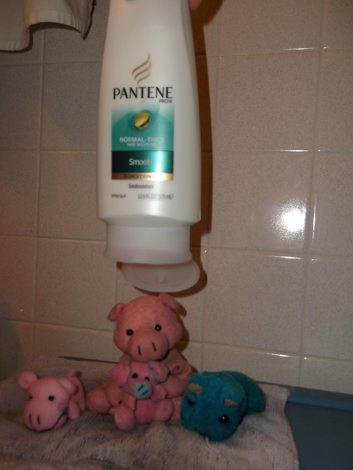 The soap was liberally applied to each animal, and Billy Bob, Perky, Don Don and Sparkle attempted not to puke, lest they puke on the soap and have to bathe again.