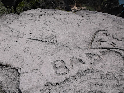I really do wish that Sparkle, DonDon and Billy Bob had been there with me, but they'd said it before. I'd had to go alone. I noticed that a lot of people had carved their names into the rock, but I didn't have the tools that I needed to carve my name into it.